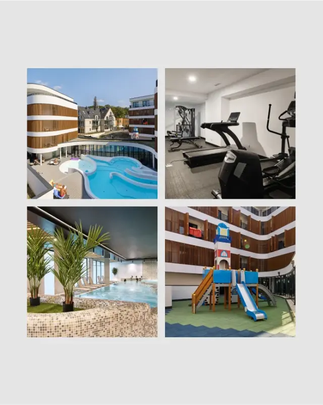 Nasz obiekt oferuje bezpłatny dostęp do wielu atrakcji, w tym basenów zewnętrznego i wewnętrznego, sali i placu zabaw, siłowni oraz business cornera, które zapewniają rozrywkę, aktywność fizyczną i wygodę dla całej rodziny.